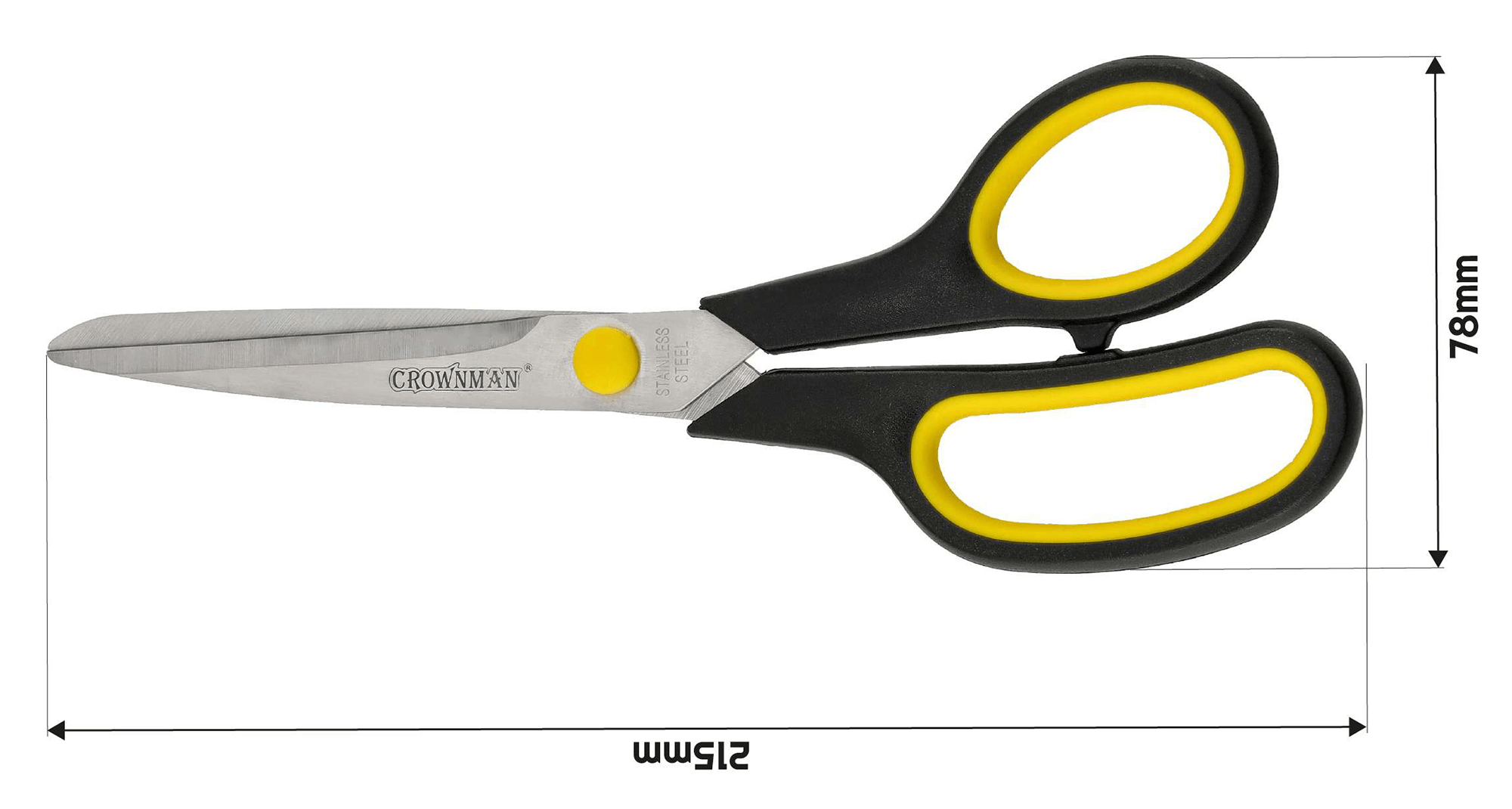 Nożyczki mają długość 215 mm, co czyni je wygodnym narzędziem zarówno do precyzyjnych cięć, jak i bardziej wymagających zadań. Są lekkie, dobrze wyważone i łatwe w przechowywaniu.