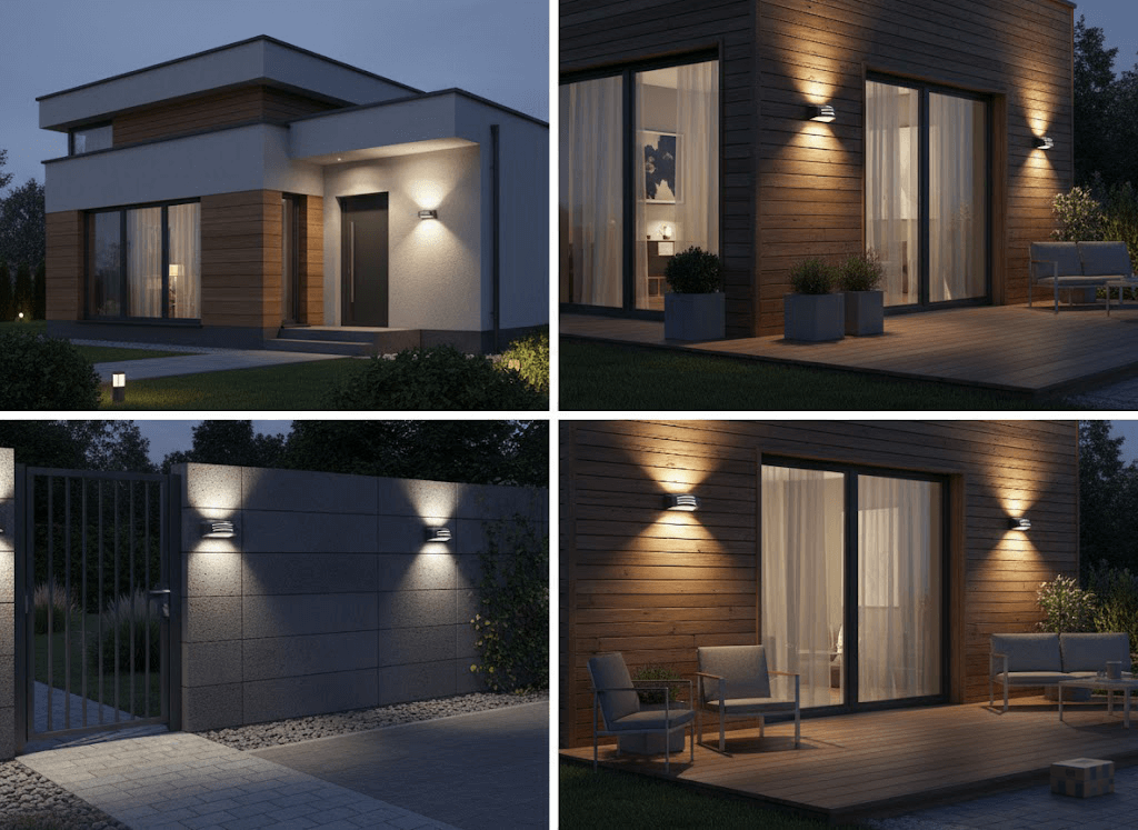 Doskonale sprawdza się jako oświetlenie elewacyjne, podkreślając architektoniczne walory budynku oraz zwiększając bezpieczeństwo wokół posesji. Może być również używana do oświetlenia tarasów, balkonów, tworząc przyjemną atmosferę i umożliwiając swobodne korzystanie z przestrzeni zewnętrznych po zmroku.