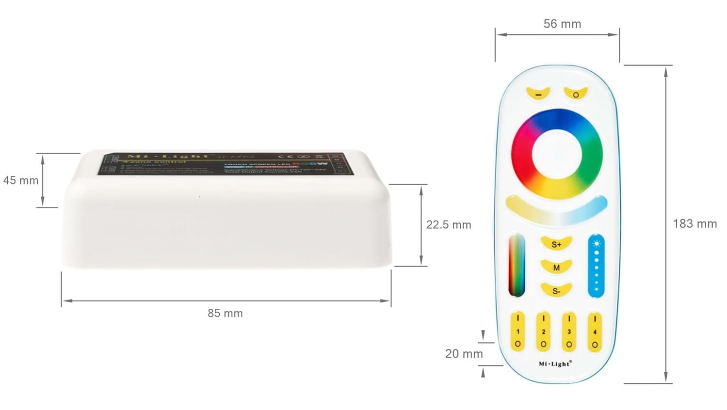 Zarówno pilot, jak i kontroler wchodzące w skład zestawu cechują się kompaktowymi wymiarami, które ułatwiają instalację i użytkowanie. Rozmiary urządzeń zostały zoptymalizowane, aby pasowały do standardowych przestrzeni montażowych, co czyni je wygodnymi i praktycznymi w codziennym użytkowaniu.