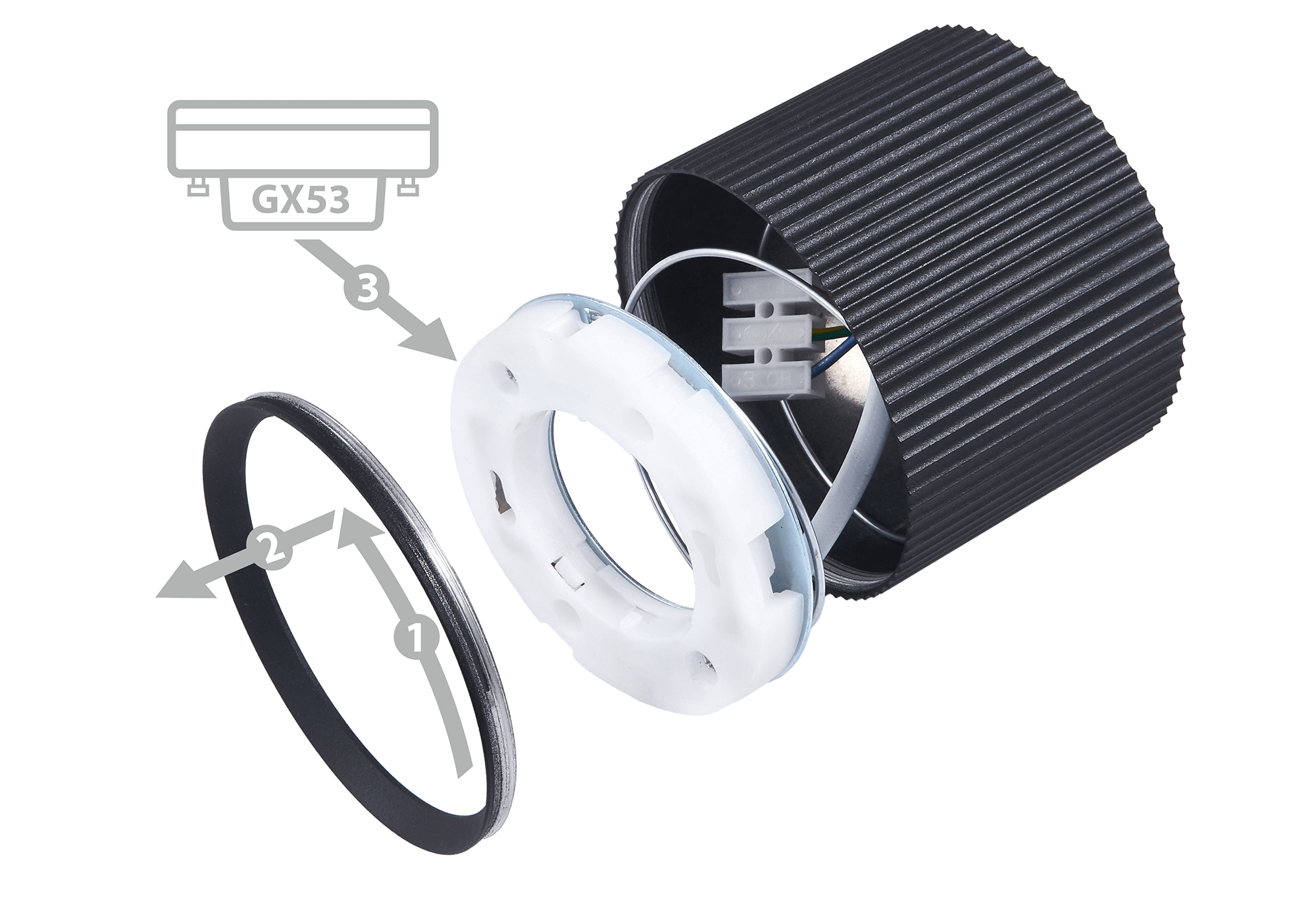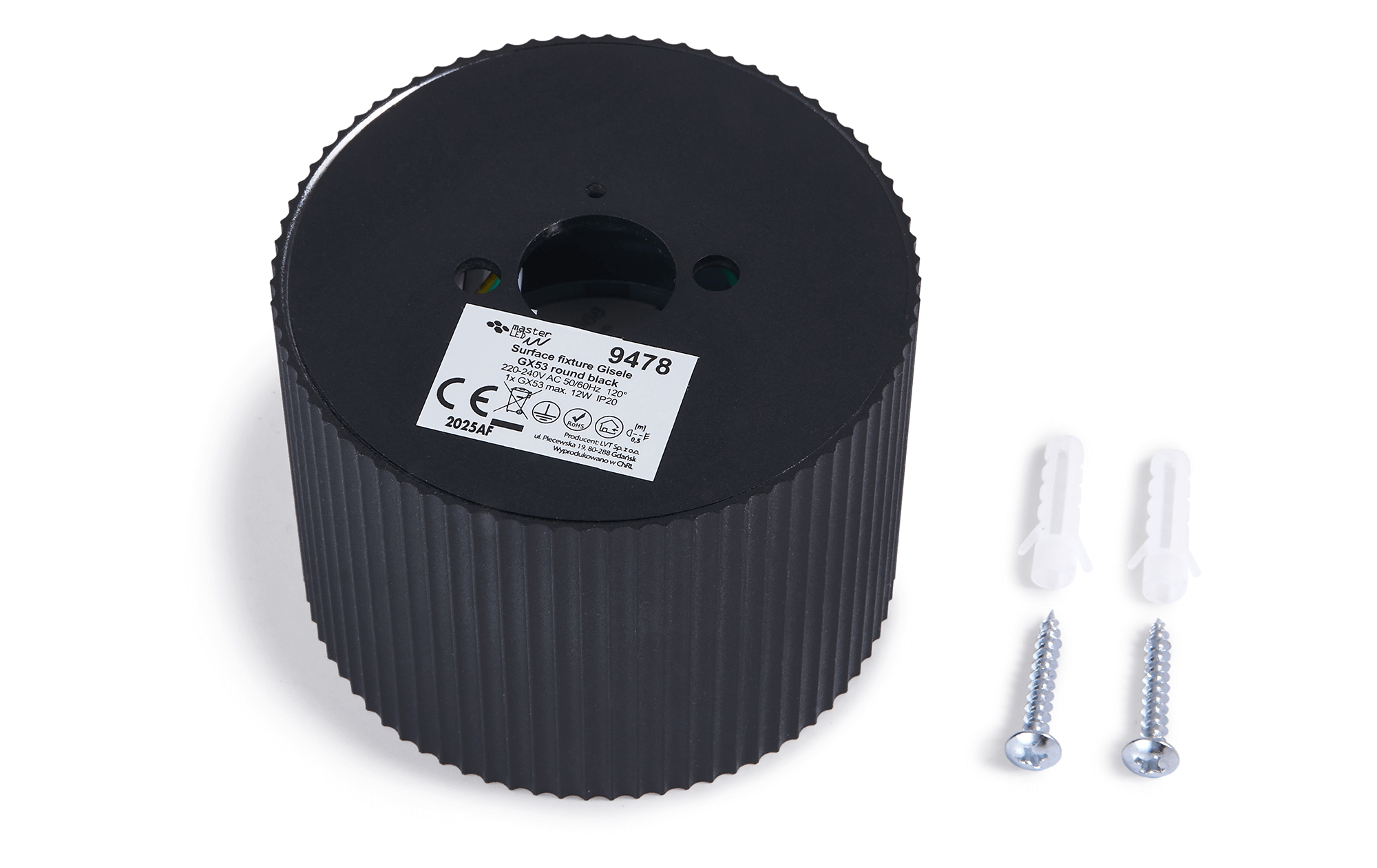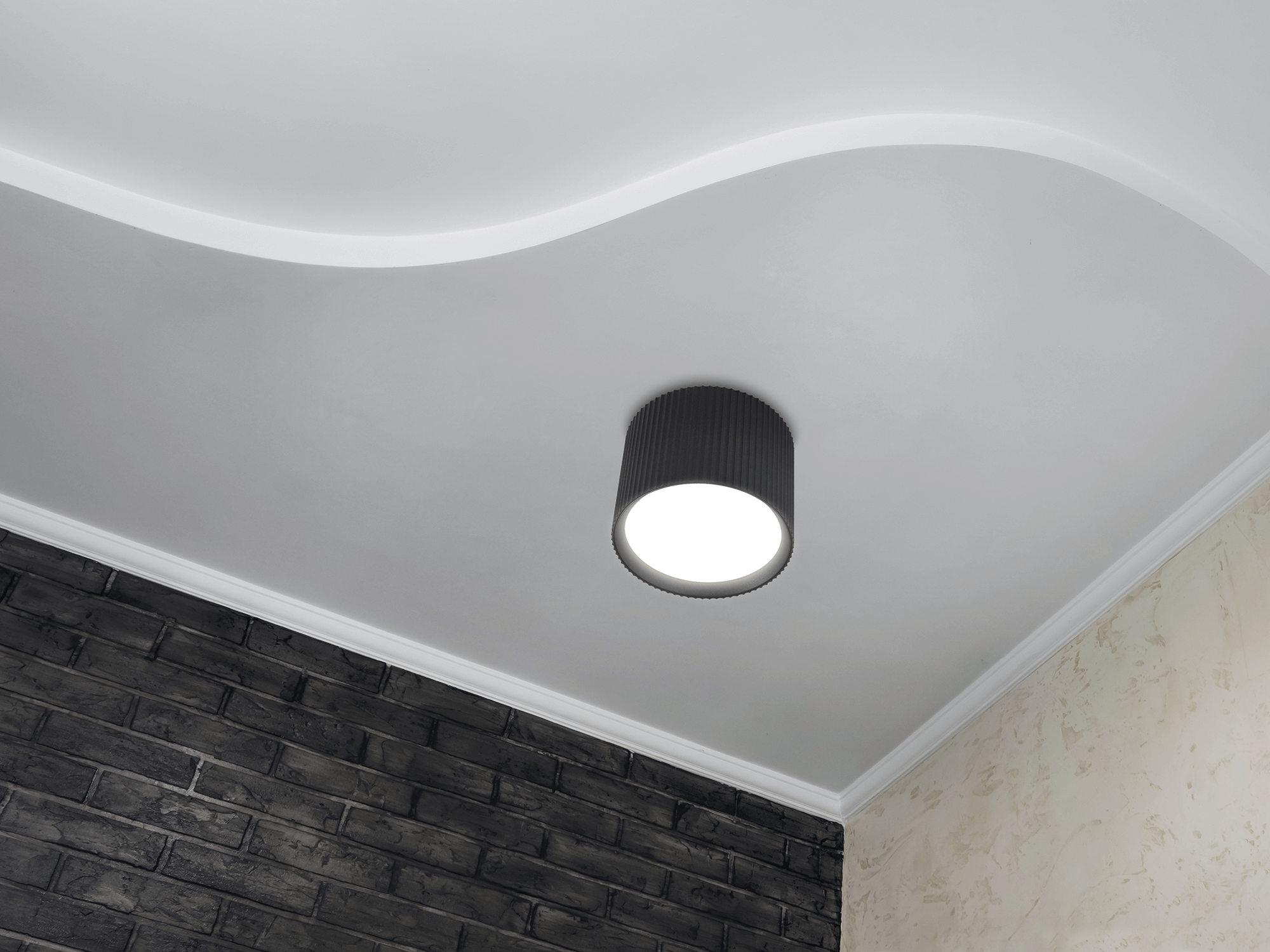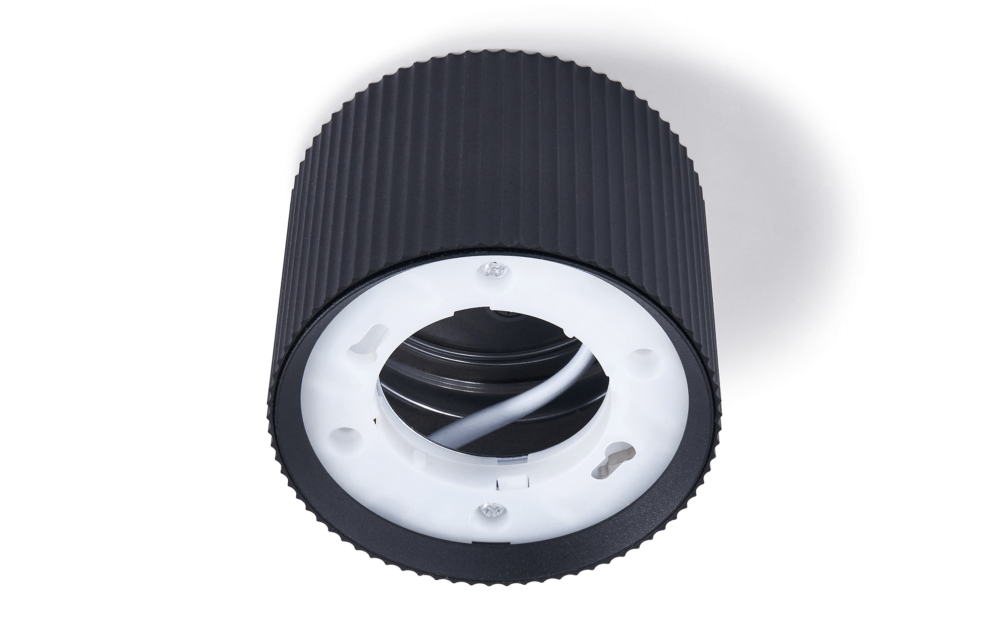 Oprawa natynkowa GX53 czarna Gisele do nowoczesnych wnętrz. Aluminiowa obudowa, wymienne źródło światła GX53 i kompaktowy format do salonu, kuchni lub biura.