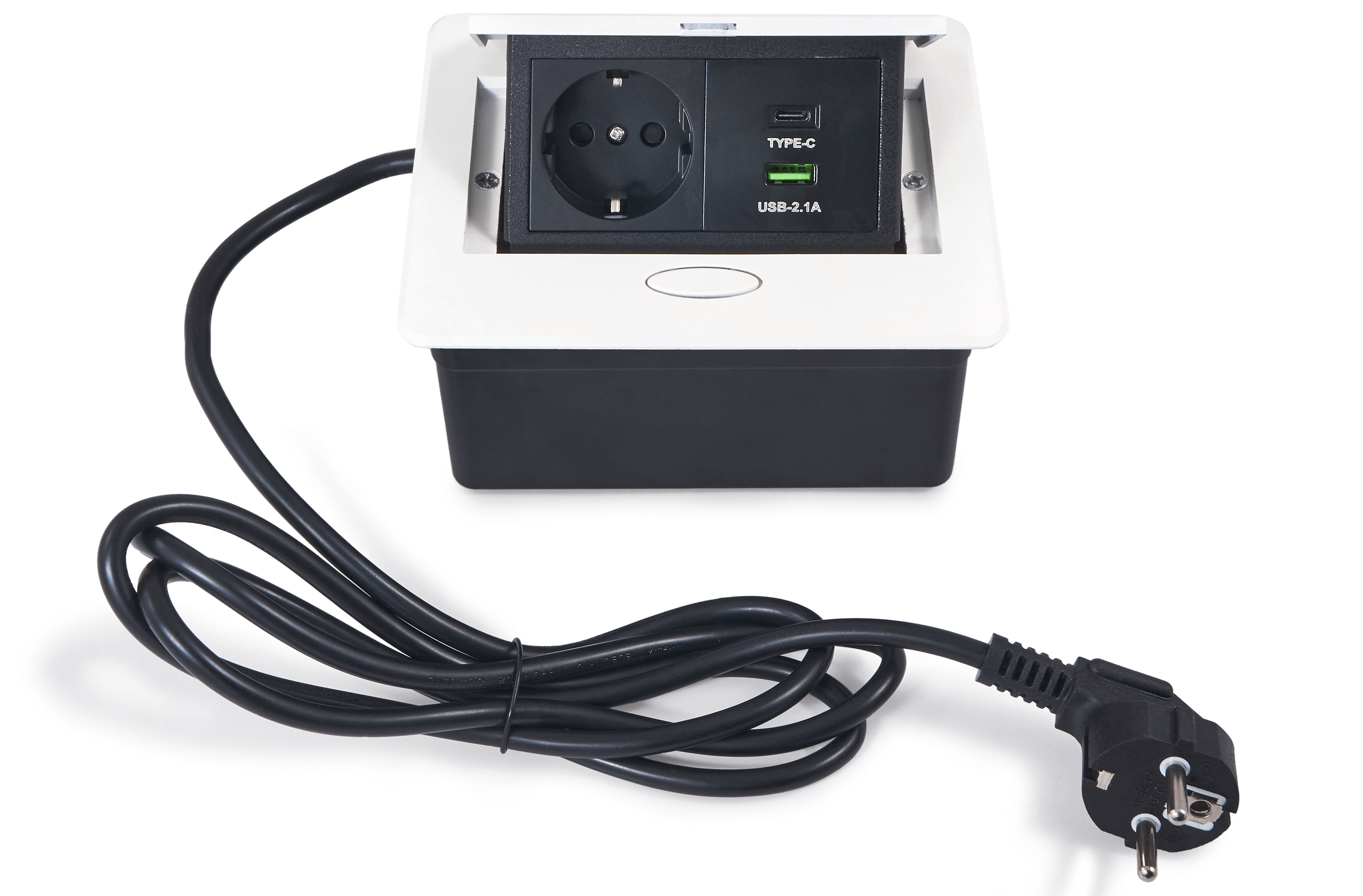 Rozdzielacz biurkowy wpuszczany w blat, listwa zasilająca 1x gniazdo zasilające, 1x USB-C oraz 1x USB-A Multibox 5 - Kremowy