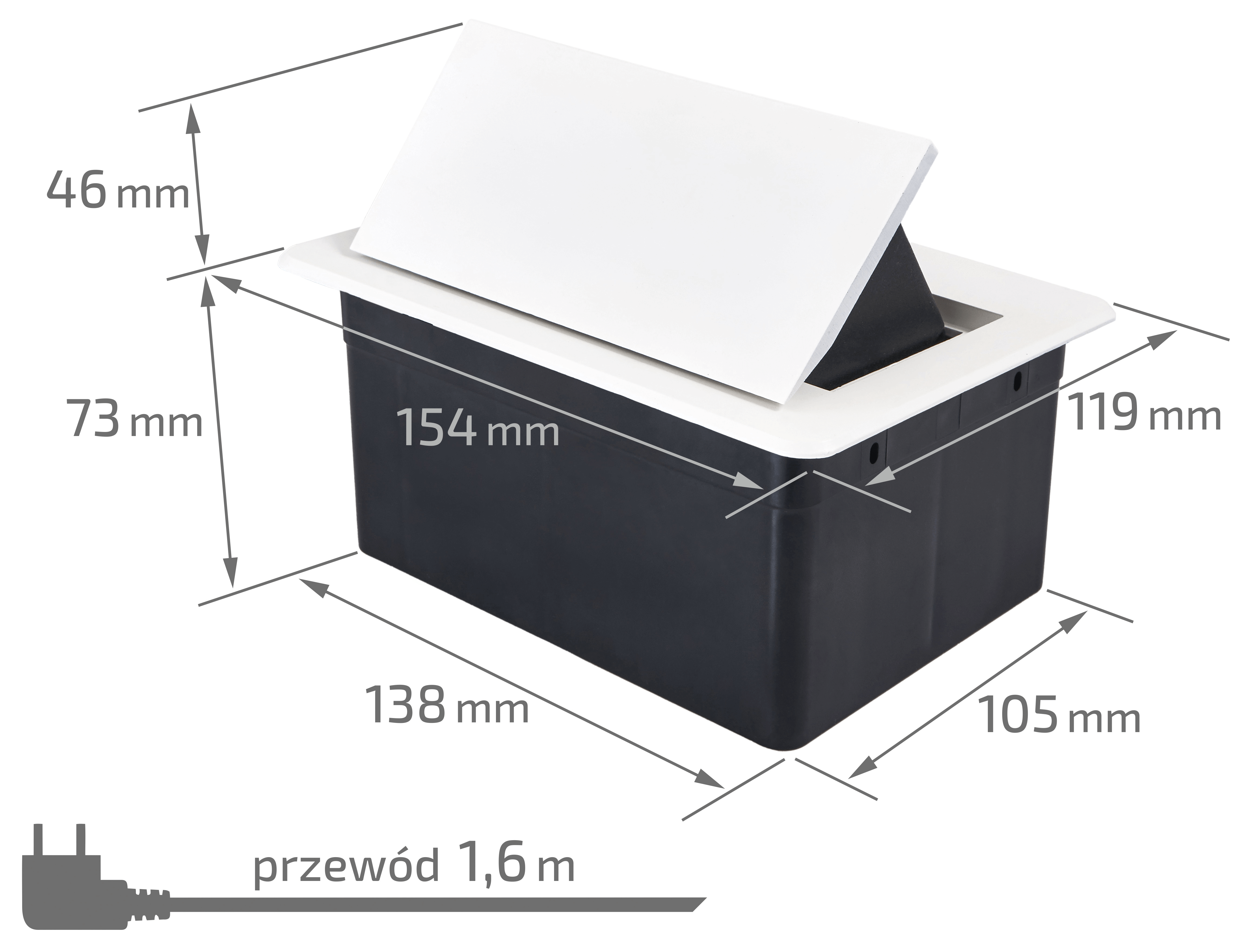 Wymiary zewnętrzne 154 × 119 × 46 [mm] (szer. × głęb. × wys. po otwarciu)