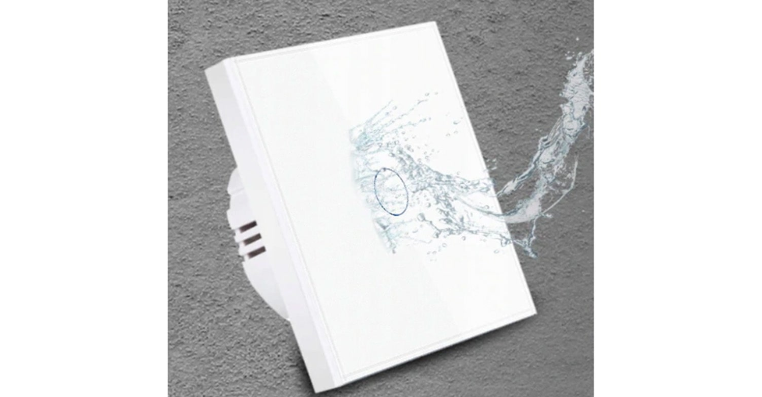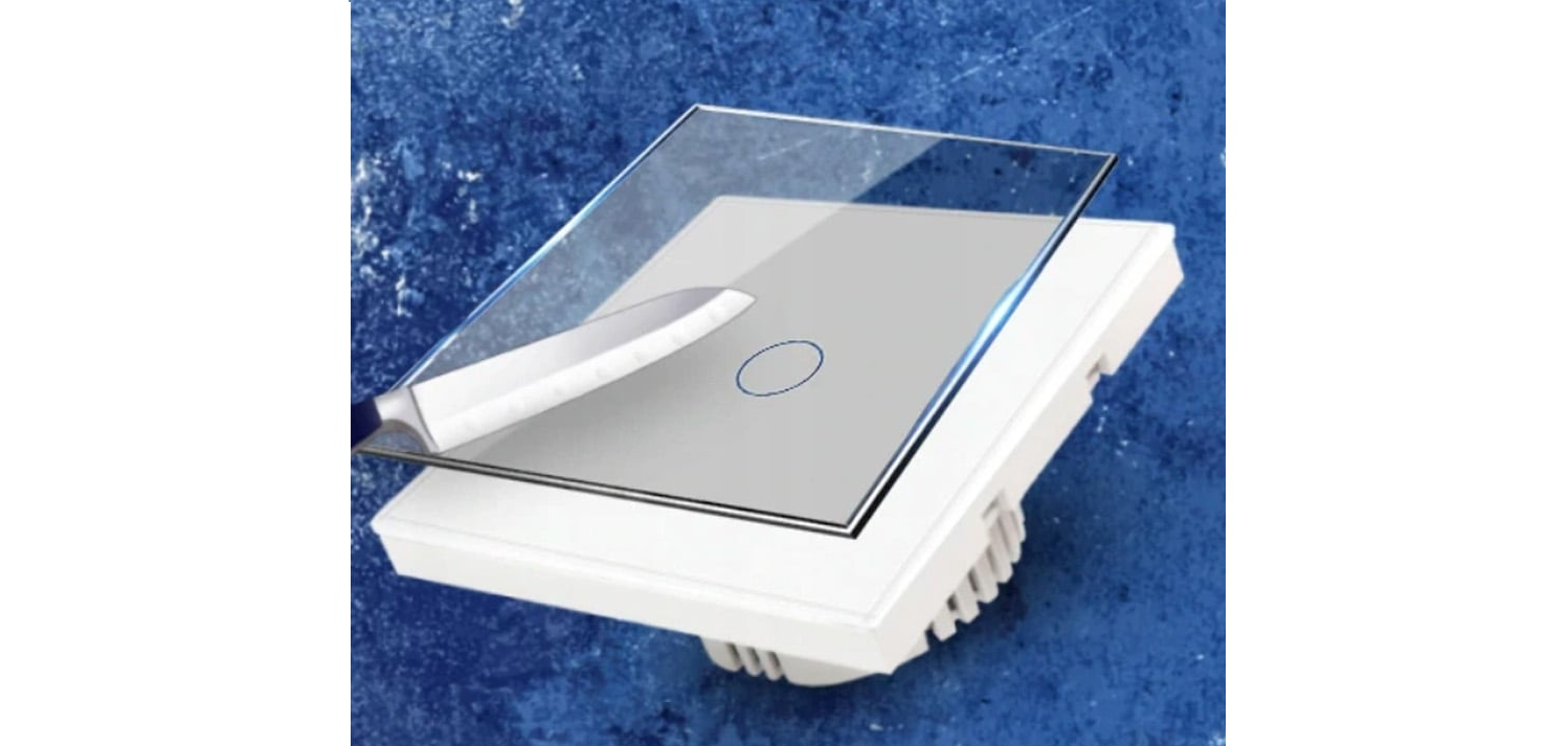 Włącznik dotykowy jest wykonany z wysokiej jakości szkła hartowanego, co zapewnia nie tylko elegancki wygląd, ale również trwałość i odporność na uszkodzenia mechaniczne. Włączniki posiadają wysoką odporność na zachlapanie wodą. Szkło, z którego wykonana jest powierzchnia, charakteryzuje się odpornością na zarysowania, co zapewnia długotrwałe zachowanie estetycznego wyglądu. Produkt charakteryzuję się również możliwością wykonania aż 100 000 cykli włączania i wyłączania.