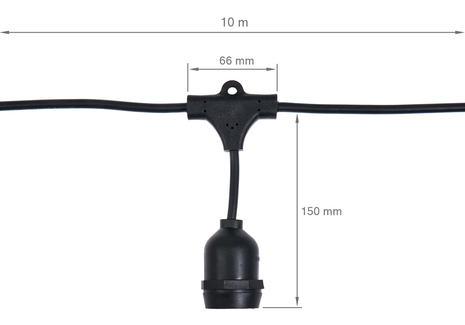 Zestaw girlandy ogrodowej ma długość 10 metrów, co pozwala na swobodne rozmieszczenie żarówek w różnych konfiguracjach. Długość ta jest wystarczająca do oświetlenia średniej wielkości ogrodu, tarasu czy balkonu. Każda z dziesięciu żarówek LED E27 jest rozmieszczona równomiernie wzdłuż kabla, co zapewnia równomierne oświetlenie całej przestrzeni.