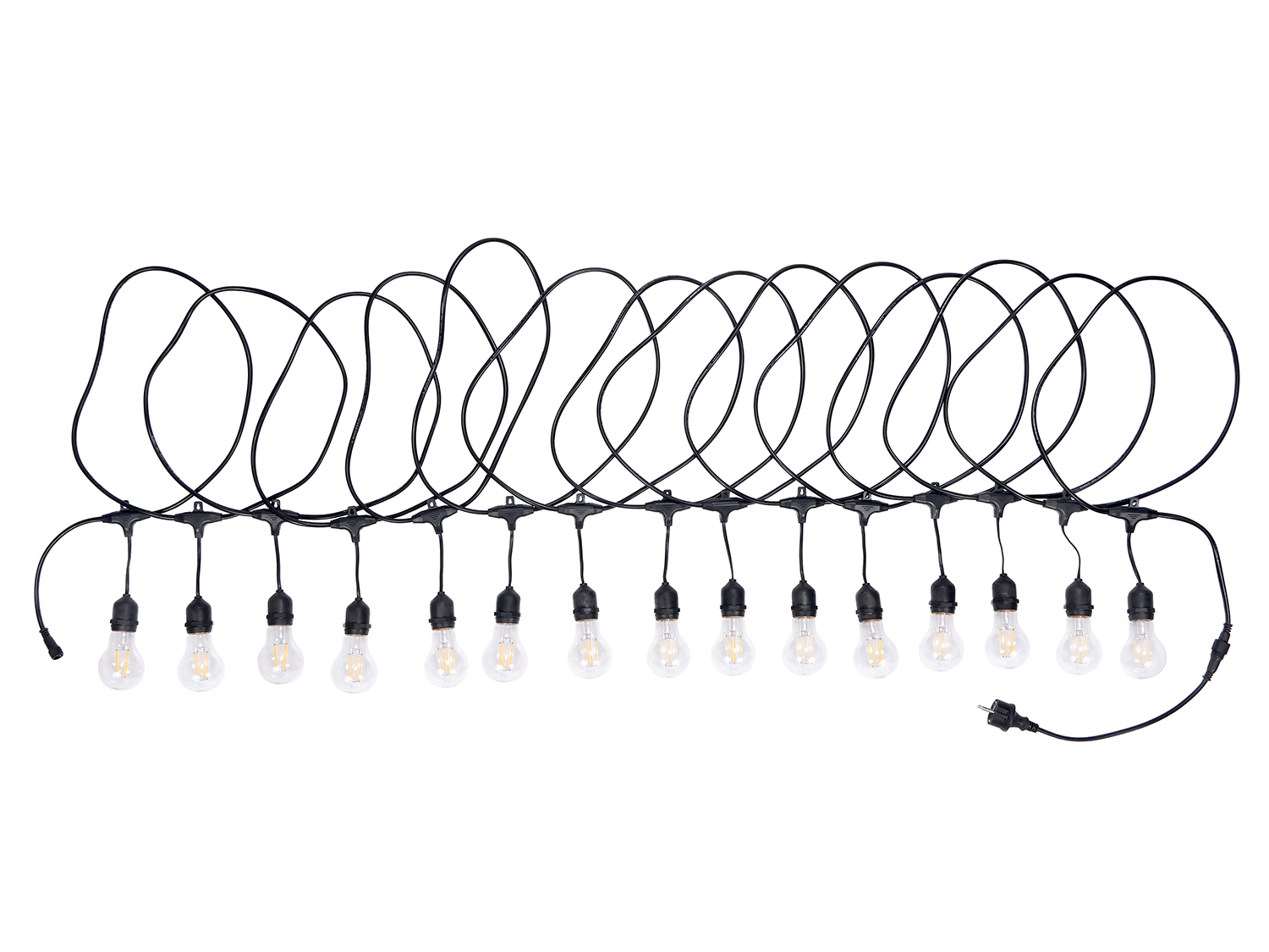 W zestawie razem z girlandą znajdziesz również 15 sztuk żarówek LED E27 1.3W filament. Jej wyjątkowy design oparty na technologii filamentowej sprawia, że emituje ciepłe, przyjemne światło o barwie 3000K, idealnie nadające się do stworzenia atmosferycznego oświetlenia w Twoim ogrodzie.