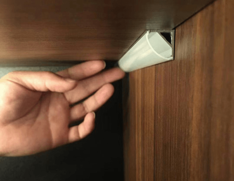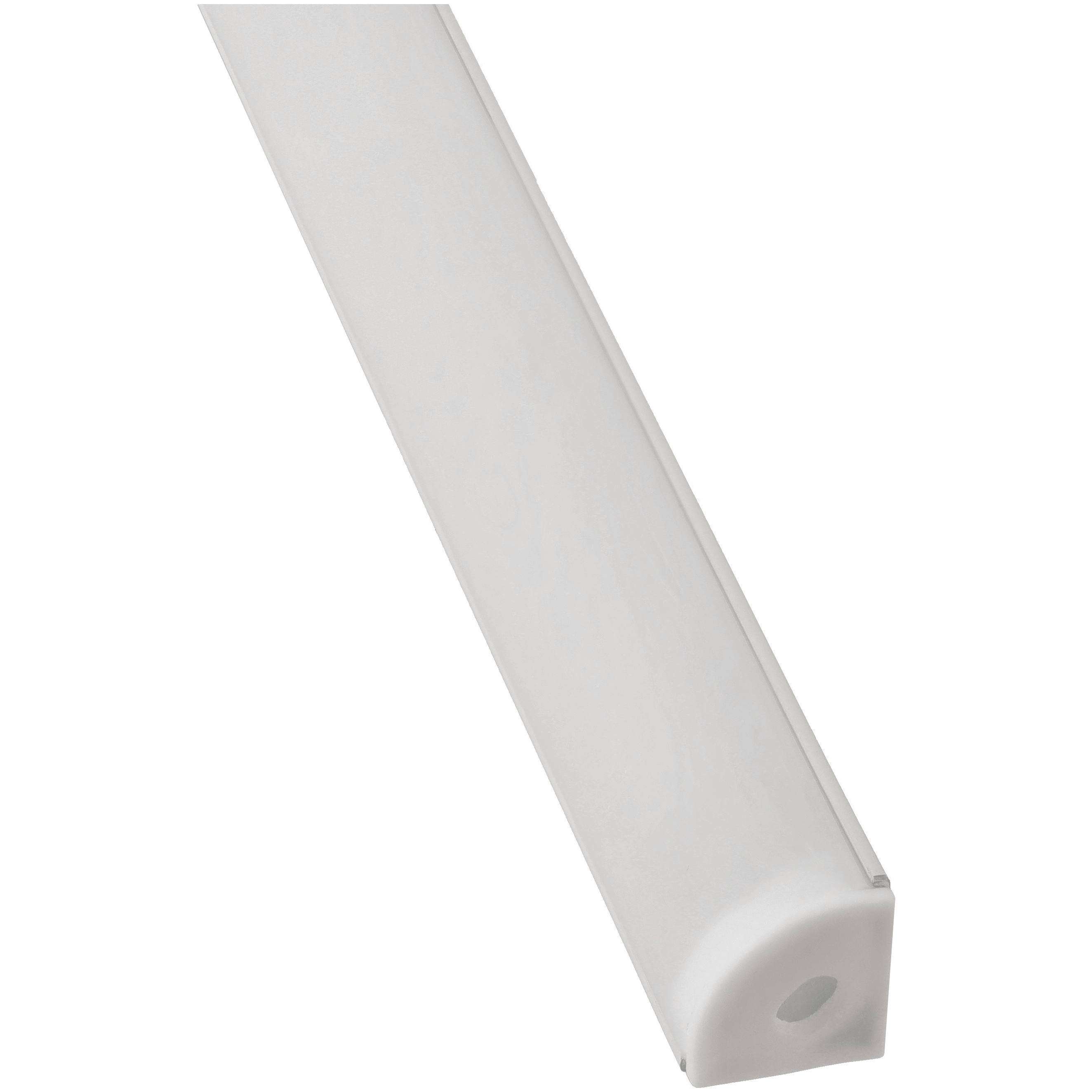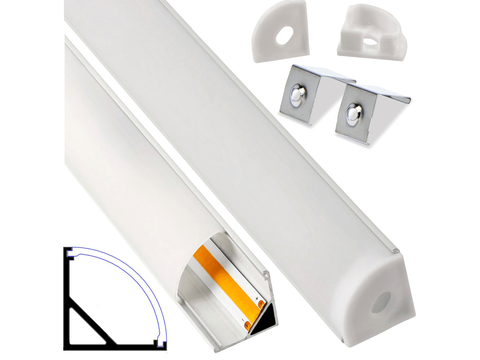 Zestaw: biały profil LED narożny 45° 2 m z mlecznym kloszem do taśm LED 10 mm. Estetyczne rozwiązanie do mebli i zabudowy z równomiernym rozproszeniem światła.