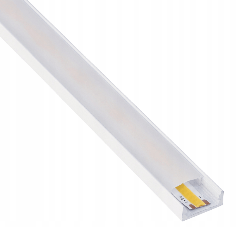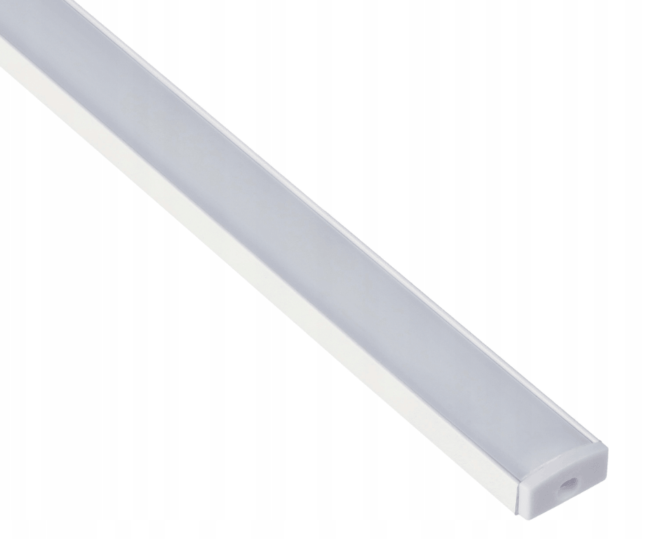 Zestaw: biały profil LED natynkowy 2 m z mlecznym kloszem do taśm LED 12.2 mm. Estetyczne rozwiązanie do mebli i zabudowy z równomiernym rozproszeniem światła.