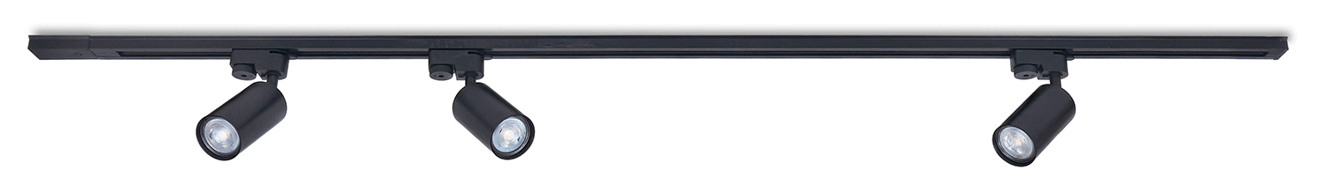 Zestaw lamp na szynie Steka Lite LED GU10 x3 + szyna 1,5m - Czarny zawiera trzy czarne lampy LED GU10 oraz listwę szynową o długości 1,5 metra. Jest to doskonałe rozwiązanie dla różnorodnych przestrzeni takich jak domy, biura czy galerie. Dzięki elastyczności systemu szynowego można łatwo zmieniać położenie i kierunek lamp zgodnie z potrzebami oświetleniowymi.