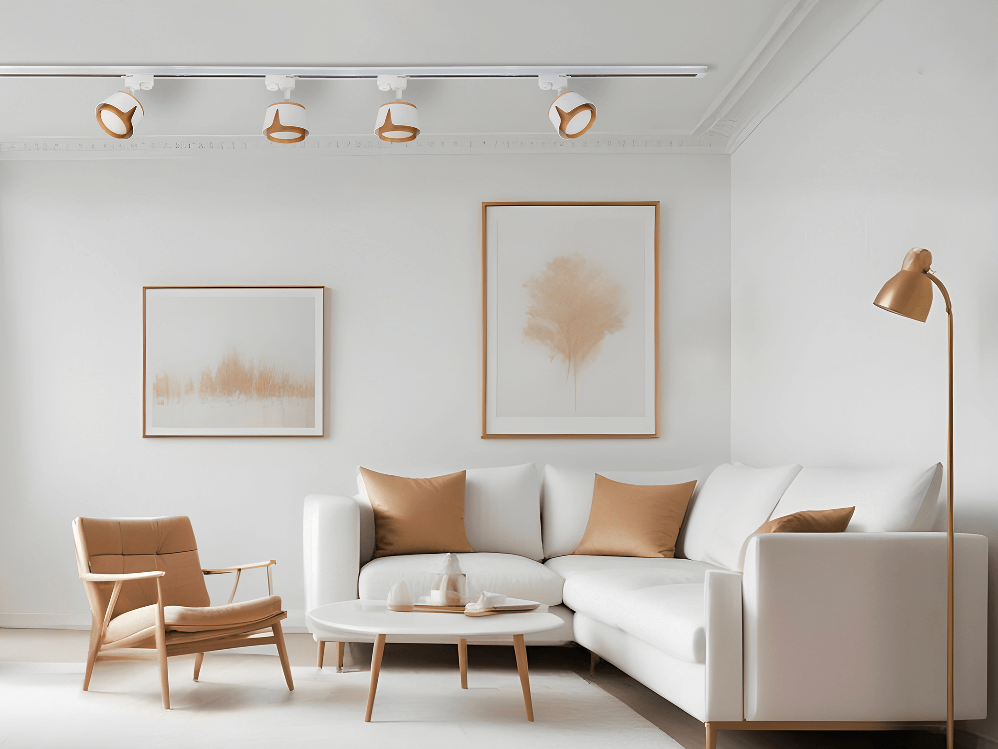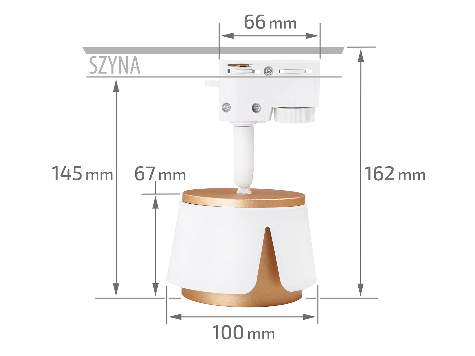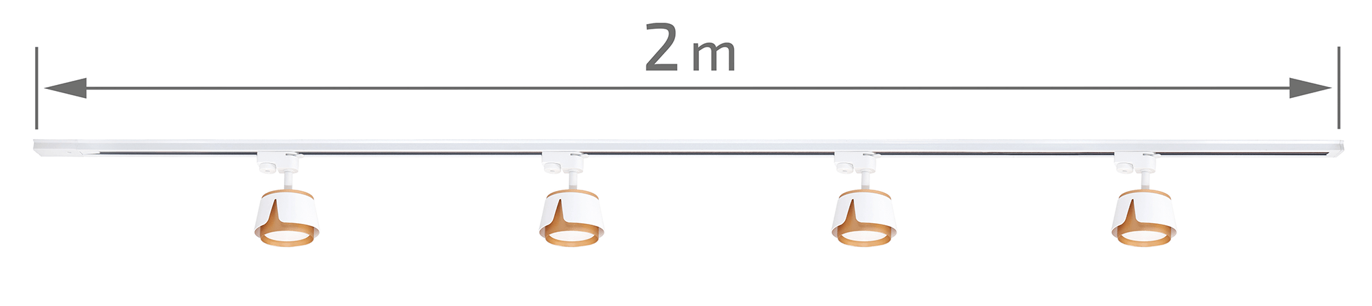 Cały zestaw mierzy 2 metry długości, co sprawia, że jest wystarczająco długi, aby oświetlić przestrzeń o dużej szerokości. Każda lampa w zestawie ma kompaktowe wymiary – około 100 mm długości i 67 mm wysokości – co sprawia, że są one dyskretne, ale jednocześnie widoczne na tle innych elementów wnętrza. Złote akcenty dodają lampom elegancji, subtelnie przełamując minimalistyczną biel i wprowadzając ciepły ton do pomieszczenia.